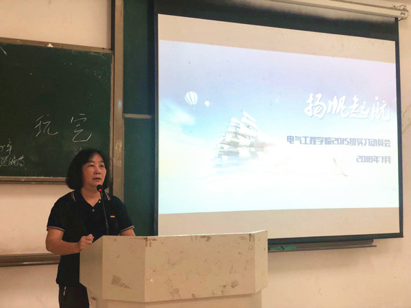 2018年7月5日下午,电气工程学院在我校A1-101召开了2019届毕业生实习、就业动员大会,开启了该院2019届毕业生的就业工作。电气工程学院副院长胡惠兰到场做动员讲话,该院2019届毕业班辅导员、2015级电气工程及其自动化3班班主任符红勋老师及2015级全体同学到场参会。