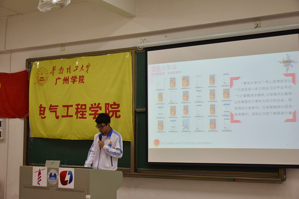 电气工程学院团委社会实践部的童俊杰同学和团委宣传设计部的李嘉琪同学进行I志愿和青年之声平台情况通报,他们向大家讲述了注册I志愿和青年之声平台的方式,以及参加活动的流程和注意事项等。紧接着,来自16级电气工程学院及其自动化6班的团支书李捷同学为大家分享基层团建工作经验,在班干部群体中作好表率作用。
