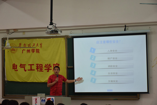 会议由电气工程学院党总支副书记林斌主讲。首先,他讲到安全是每个大学生完成学业的重要保证,是每个大学生健康成长的基本条件,安全涉及到每个人的学习、工作和生活。